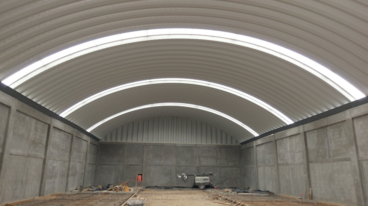 Se trata de techos curvos autosoportantes, es decir, que no requieren estructuras intermedias, lo que permite cubrir grandes claros hasta 35 metros de ancho de manera rápida, segura.
